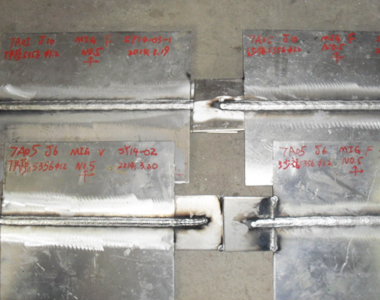 铝合金是高速船的主要结构材料,铝合金可以设计出更合理的结构形式,减轻重量,提高结构强度。我公司自主研发的轻型自行门桥等产品均采用了7系高强度铝合金,因此造船工艺迎来了重大的转换期,选用合适的焊接方法和焊接工艺,有效控制铝合金焊接变形及焊接接头强度,公司工法科还为此研制了焊接氩气保护装置和焊接环境风向控制箱等科技含量很高的工装。我们在接头设计、焊接工艺参数等方面进行了大量的焊接试验。经过一代一代的努力,积累丰富的数据和经验,外观成型和理化试验后机械性均符合标准,已编制出准确的7系高强度铝合金PWPS,形成正式的焊接试验报告(WPQR),并制定出具体的现场焊接工艺,将形成工艺标准。